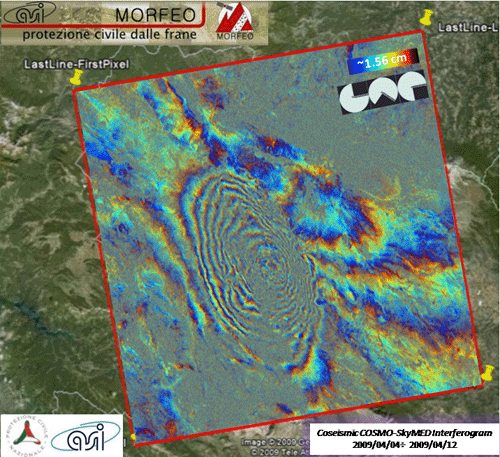 (in Fig.1 the co-seismic displacement pattern revealed by COSMO-